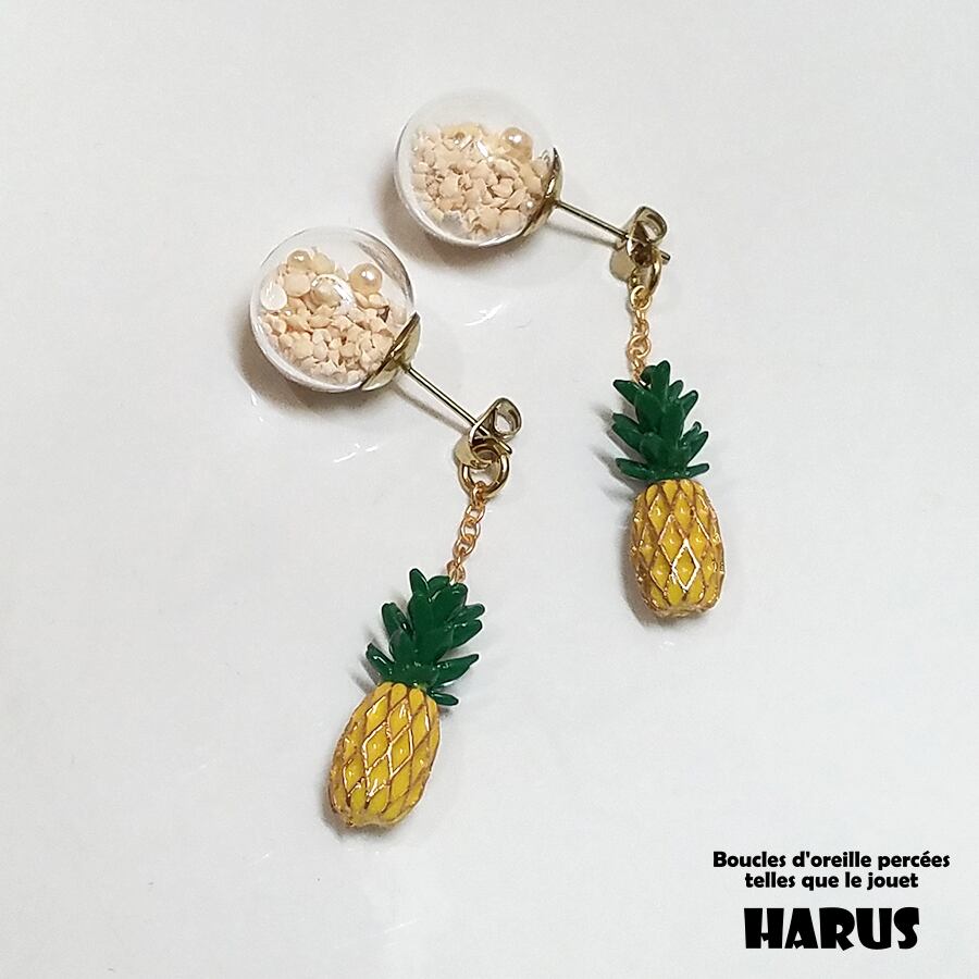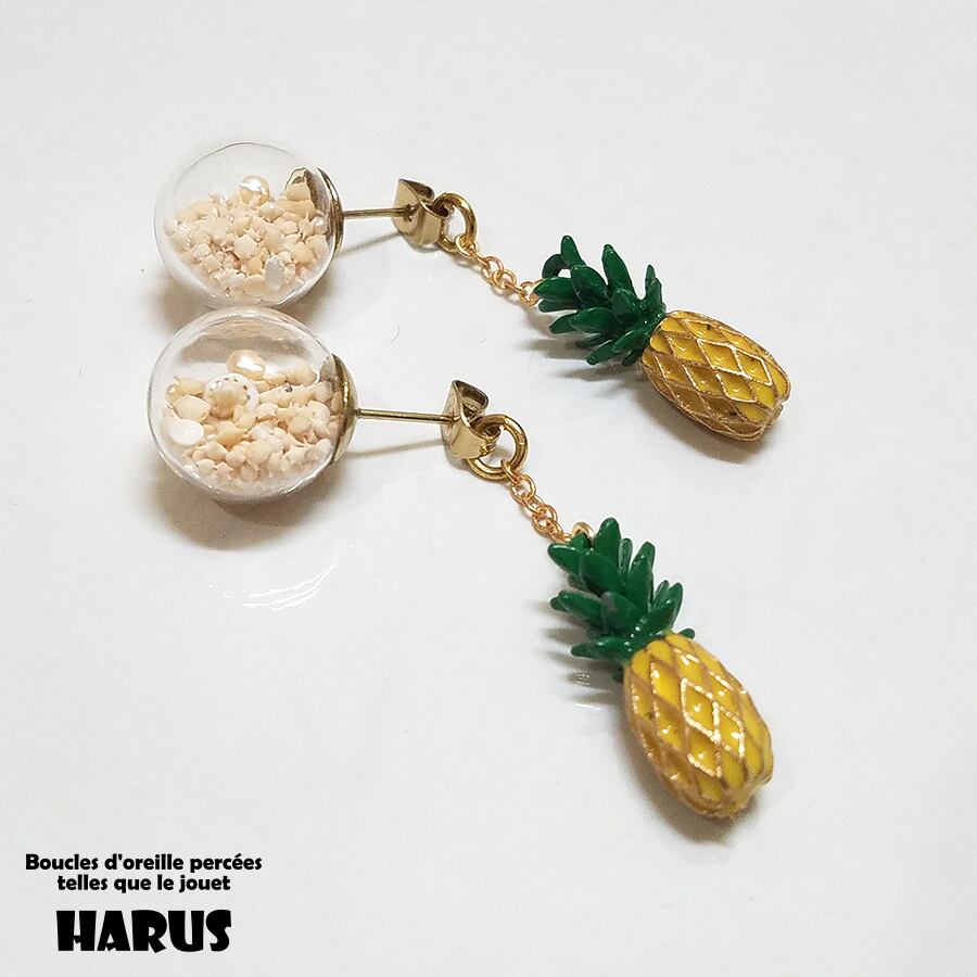 ゆらゆら揺れるパイナップルは、ピアスキャッチ側に付いています♡