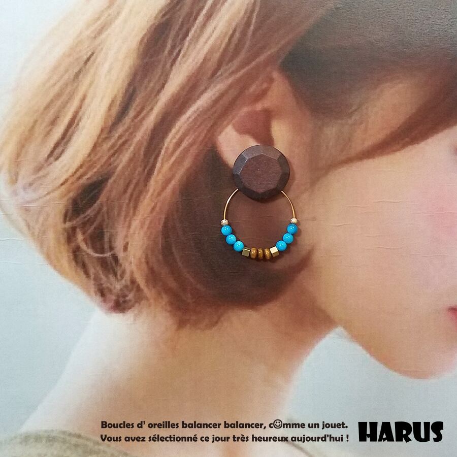 ウッドカボションの南国ピアス【ダークブラウン:変形】